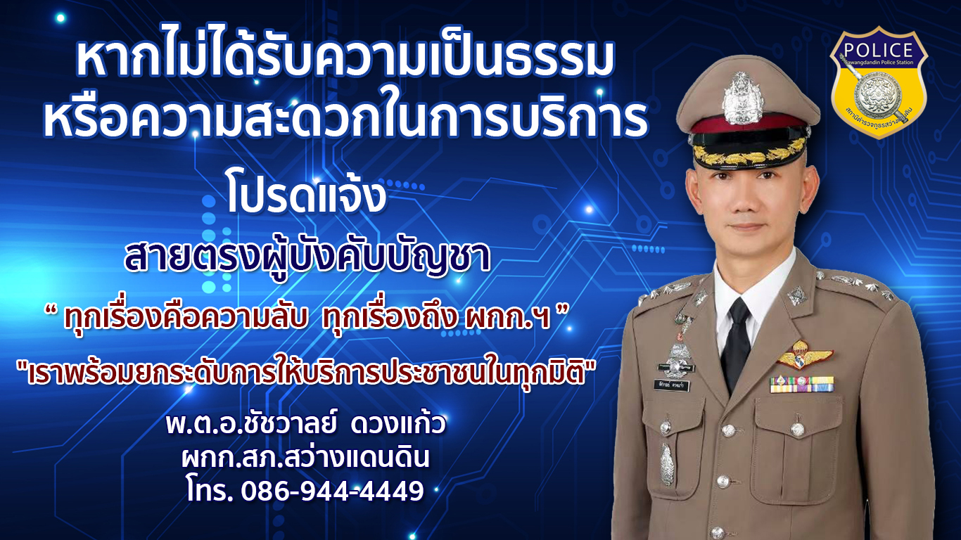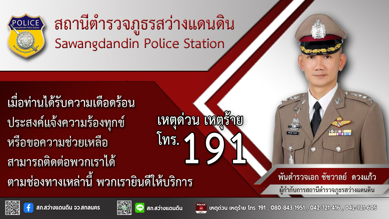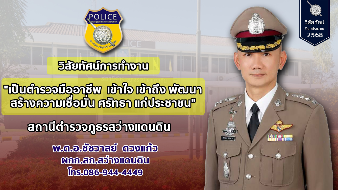 วันที่ ( 21 เม.ย.68) เวลา 13.00 น. พ.ต.อ.ชัชวาลย์ ดวงแก้ว ผกก.สภ.สว่างแดนดิน, พ.ต.ท.ชัยยุทธ รอดเว
