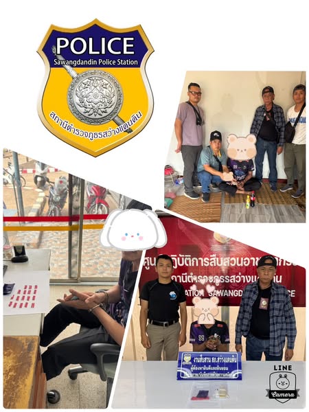 พ.ต.อ.ชัชวาลย์ ดวงแก้ว ผกก.สภ.สว่างแดนดิน , พ.ต.ท.เดชาธร เจตเจริญกุล รอง.ผกก.สส ฯ พ.ต.ท.คมน์ มุงคุณ สว.สส ฯ