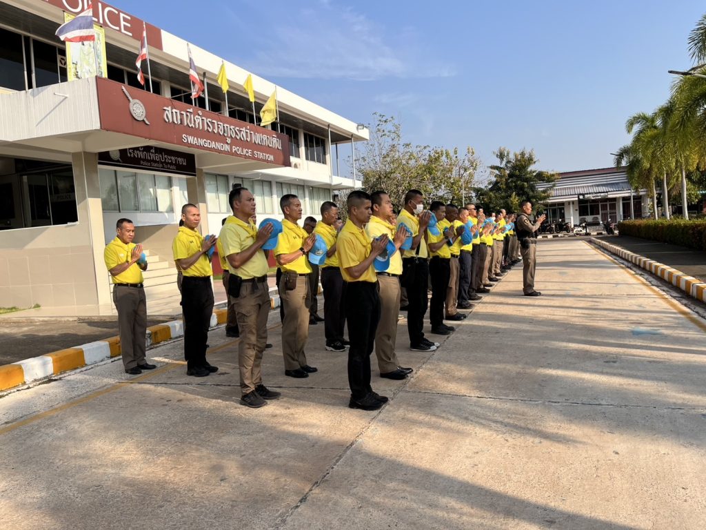 วันนี้ 21 ม.ค.68 เวลา 08.30 น. พ.ต.อ.อภิรักษ์ ศรีหารักษา ผกก.สภ.สว่างแดนดิน มอบหมายให้ พ.ต.ท.ชัยยุทธ รอดเวียง รอง ผกก.ป.ฯ, พ.ต.ท.อำนาจ แก้วน่าน รอง ผกก.สส.ฯ นำข้าราชการตำรวจในสังกัด รวมแถวเคารพธงชาติ สวดมนต์ไหว้พระ กล่าวบทปลงใจ กล่าวอุดมคติตำรวจ ประชุมถ่ายทอดนโยบาย ข้อราชการ ข้อสั่งการของผู้บังคับบัญชา และนำข้าราชการตำรวจร่วมกิจกรรมจิตอาสาพัฒนาพื้นที่ สภ.สว่างแดนดิน