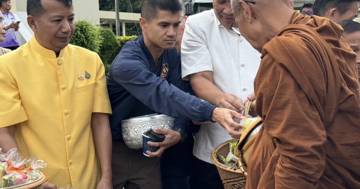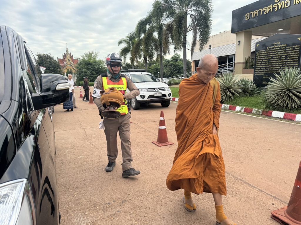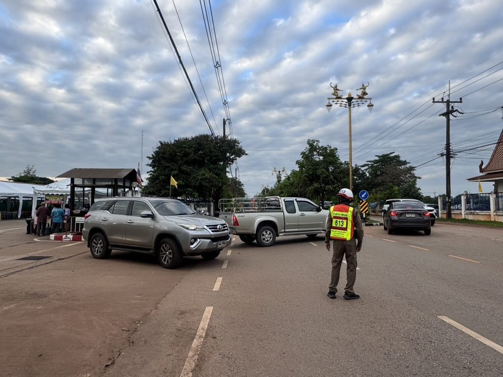 รอง ผกก.ป.สภ.สว่างแดนดิน พ.ต.ท.อธิพงษ์ กงพาน สวป.สภ.สว่างแดนดิน ชุดจราจร จิตอาสาจราจร จัดการจราจร และอำนวยความสะดวกการจราจร โครงการทำบุญทอดผ้าป่าฯ พิธีทำบุญตักบาตร โรงพยาบาลสมเด็จพระยุพราชสว่างแดนดิน อ.สว่างแดนดิน จ.สกลนคร