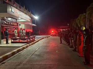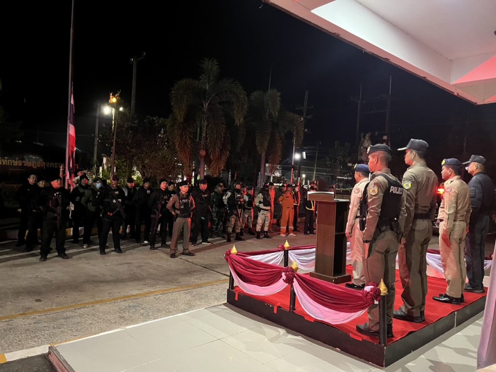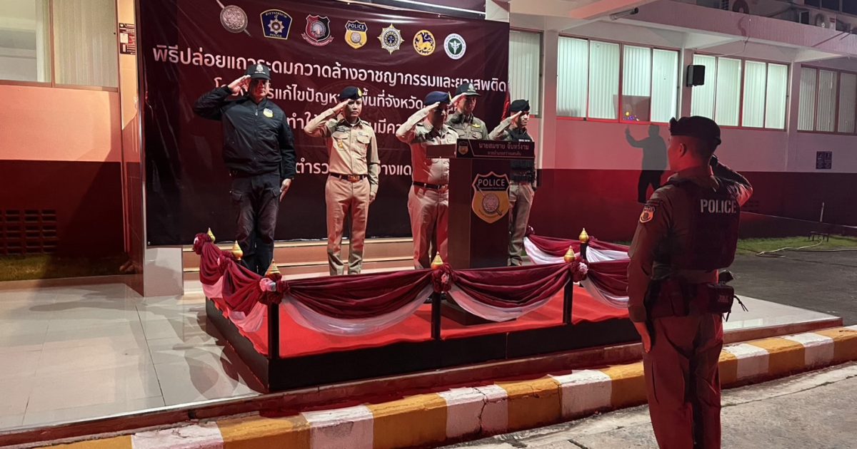 พร้อมด้วยเจ้าหน้าที่ตำรวจ, เจ้าหน้าที่ฝ่ายปกครอง ปล่อยแถวระดมกวาดล้างอาชญากรรมและยาเสพติด ตามโครงการแก้ไขปัญหาในพื้นที่จังหวัดสกลนคร เพื่อให้ประชาชนมีความสุข ณ บริเวณหน้า สภ.สว่างแดนดิน