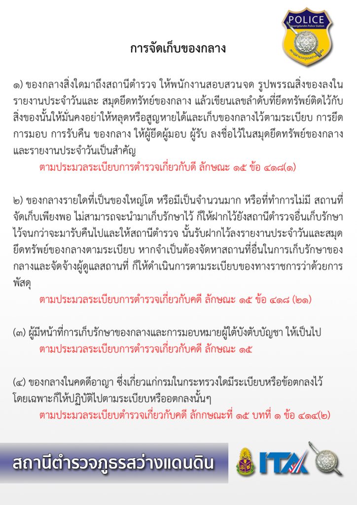 *มีสมุดควบคุมการจัดเก็บของกลางอย่างเป็นระบบ